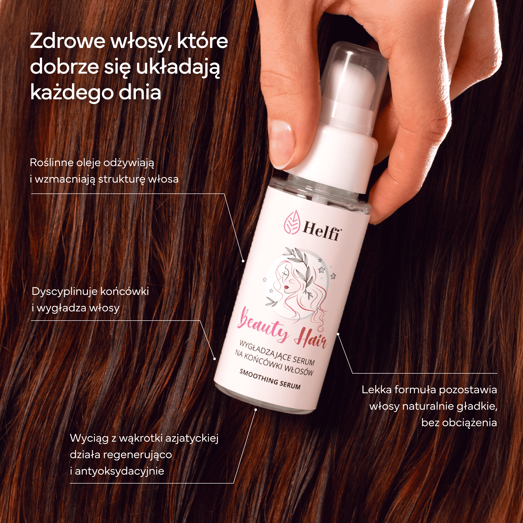 Użyj serum Beauty Hair jako ostatniego kroku w pielęgnacji, aby wygładzić włosy i zabezpieczyć je przed utratą wilgoci.