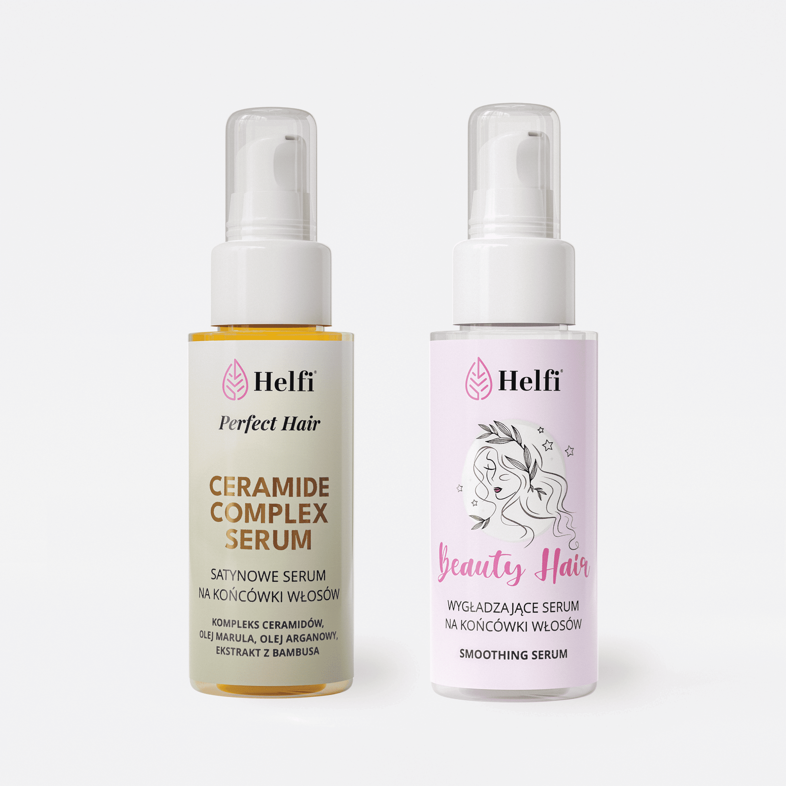 Zestaw serum ceramidowe + serum Beauty Hair to duet stworzony dla włosów kruchych, łamliwych i zniszczonych, szczególnie na długości i końcówkach. Serum ceramidowe naprawia mikrouszkodzenia w strukturze włosa, a serum silikonowe chroni go przed dalszym niszczeniem.